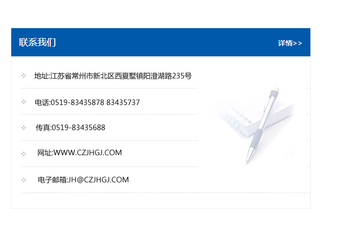 地址:常州市新北區友邦商務大廈1幢16、17層  電話:0519-85101652  傳真:0519-85112595  郵編:213022  網址:www_cz-jiayue_cn.023txwz.com  郵箱:xiajifengaa@163.com